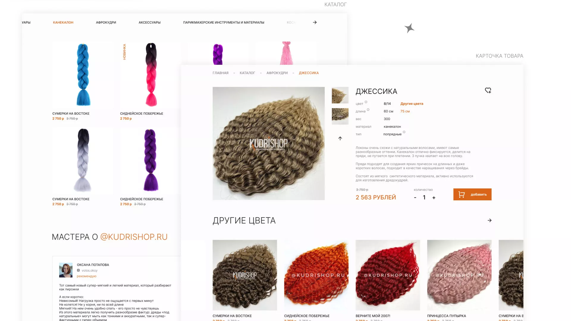 Создание интернет-магазина по продаже афрокудрей и других материалов для брендинга в Тутаеве. Целевая аудитория — молодые и современные девушки, желающие разнообразить свой образ.